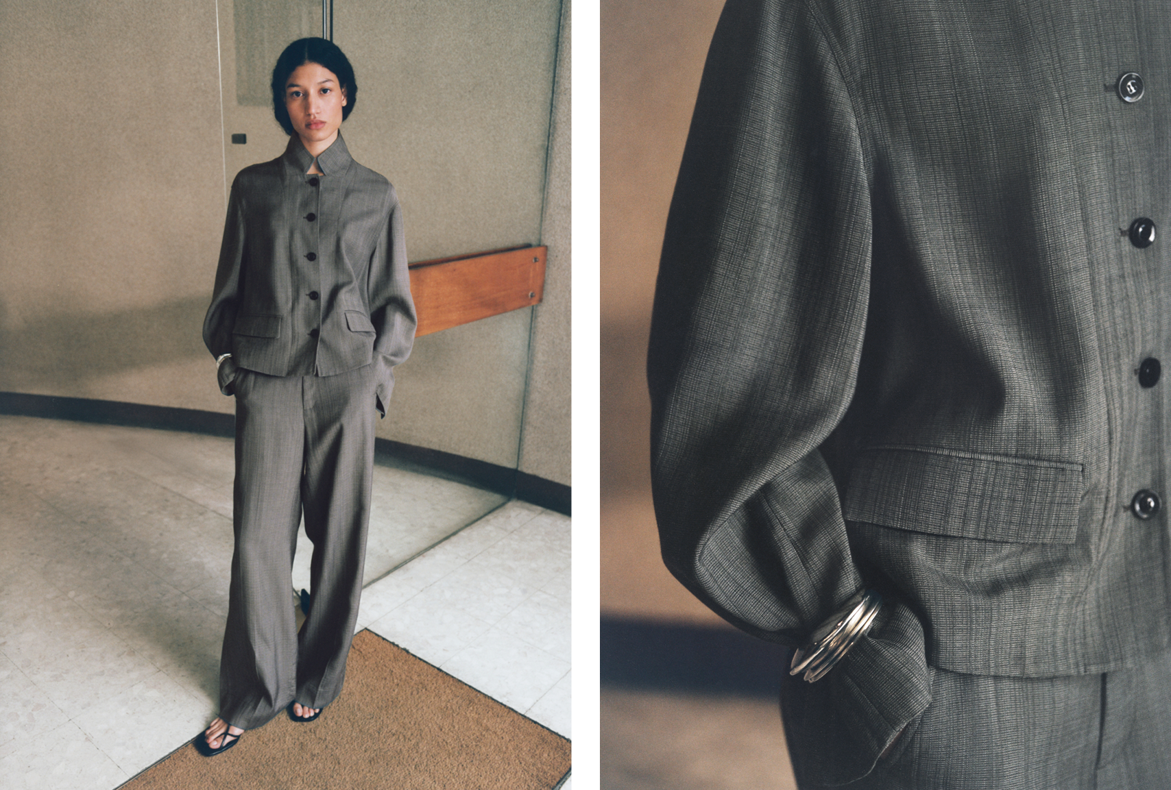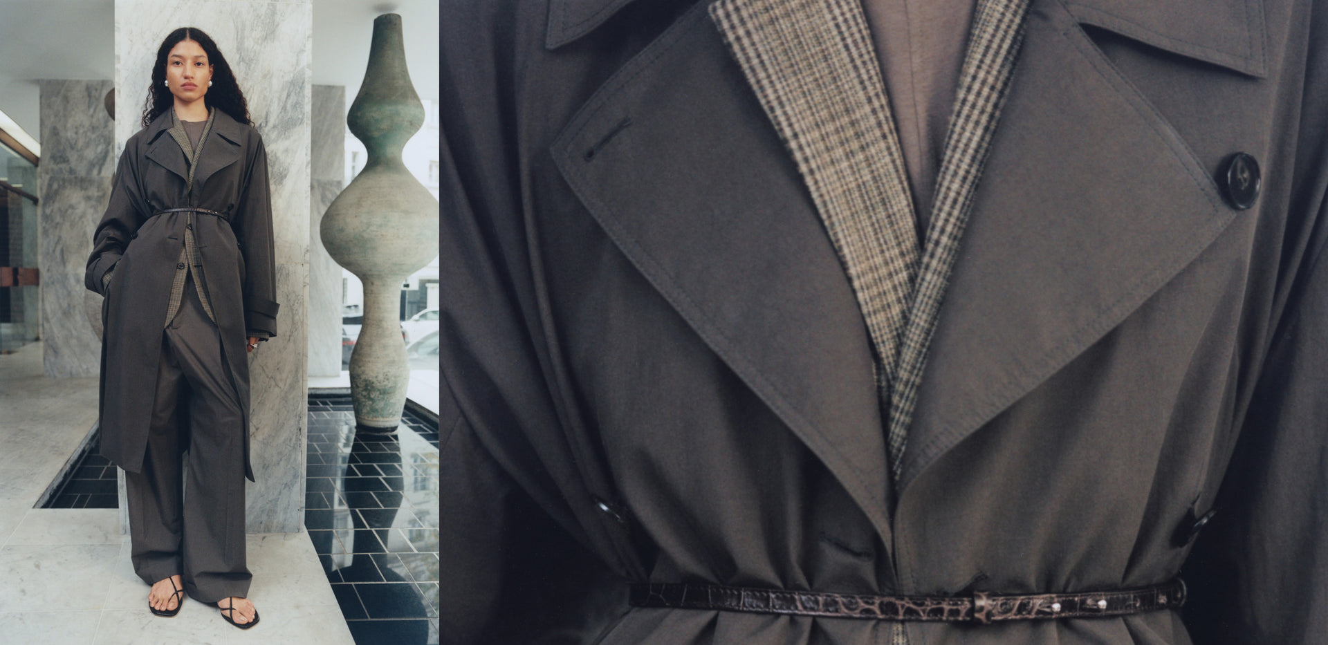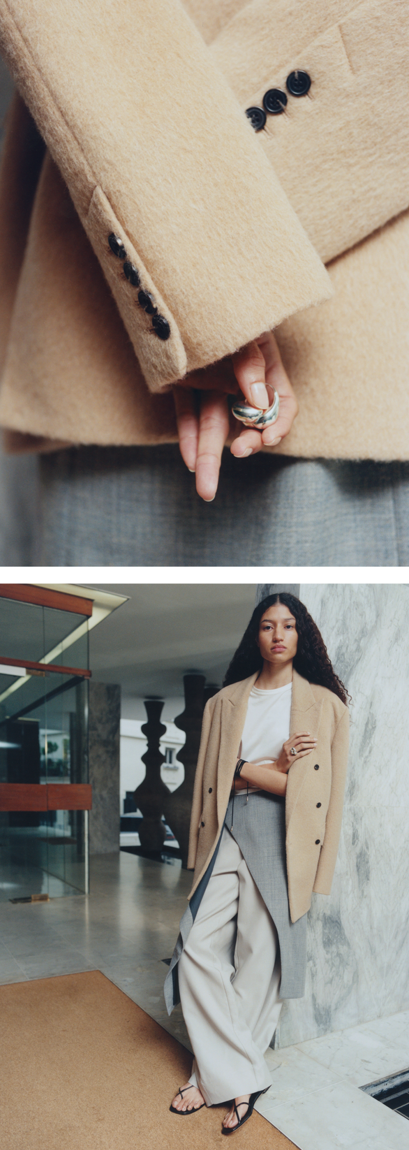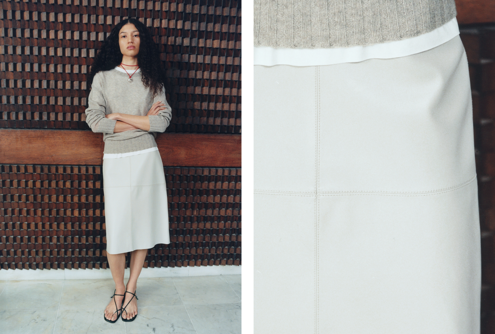 An interplay of jewellery and colourful cords completes the look, while the new sandals hint at the summer styles to come.