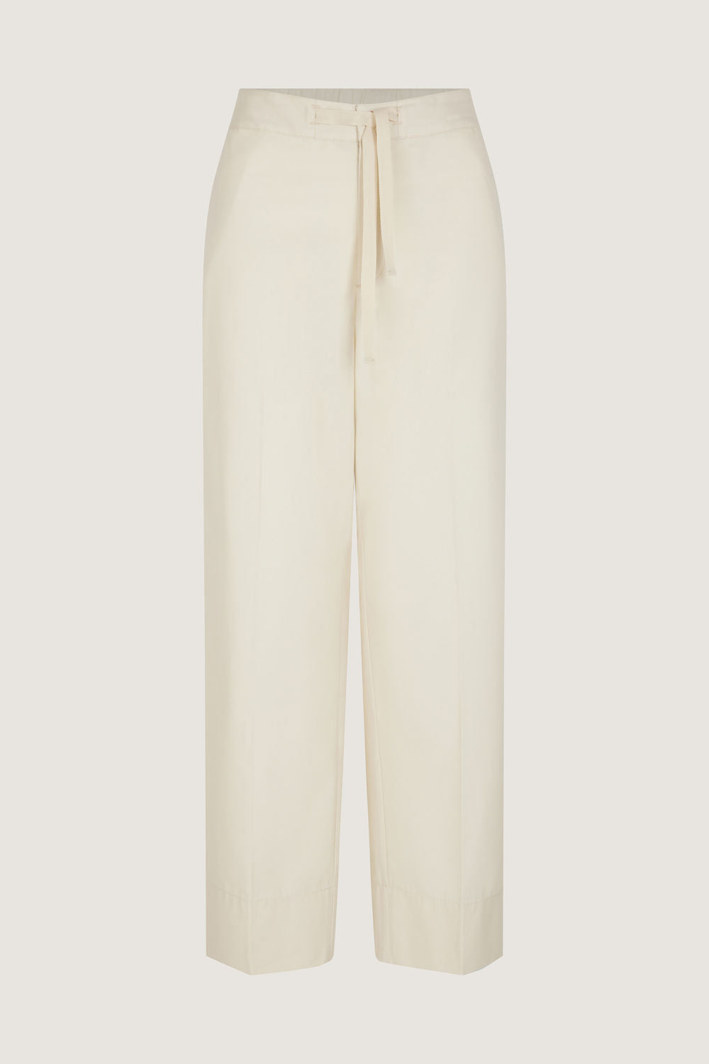 Elasticated waist trousers in cotton and silk fabric off-white
