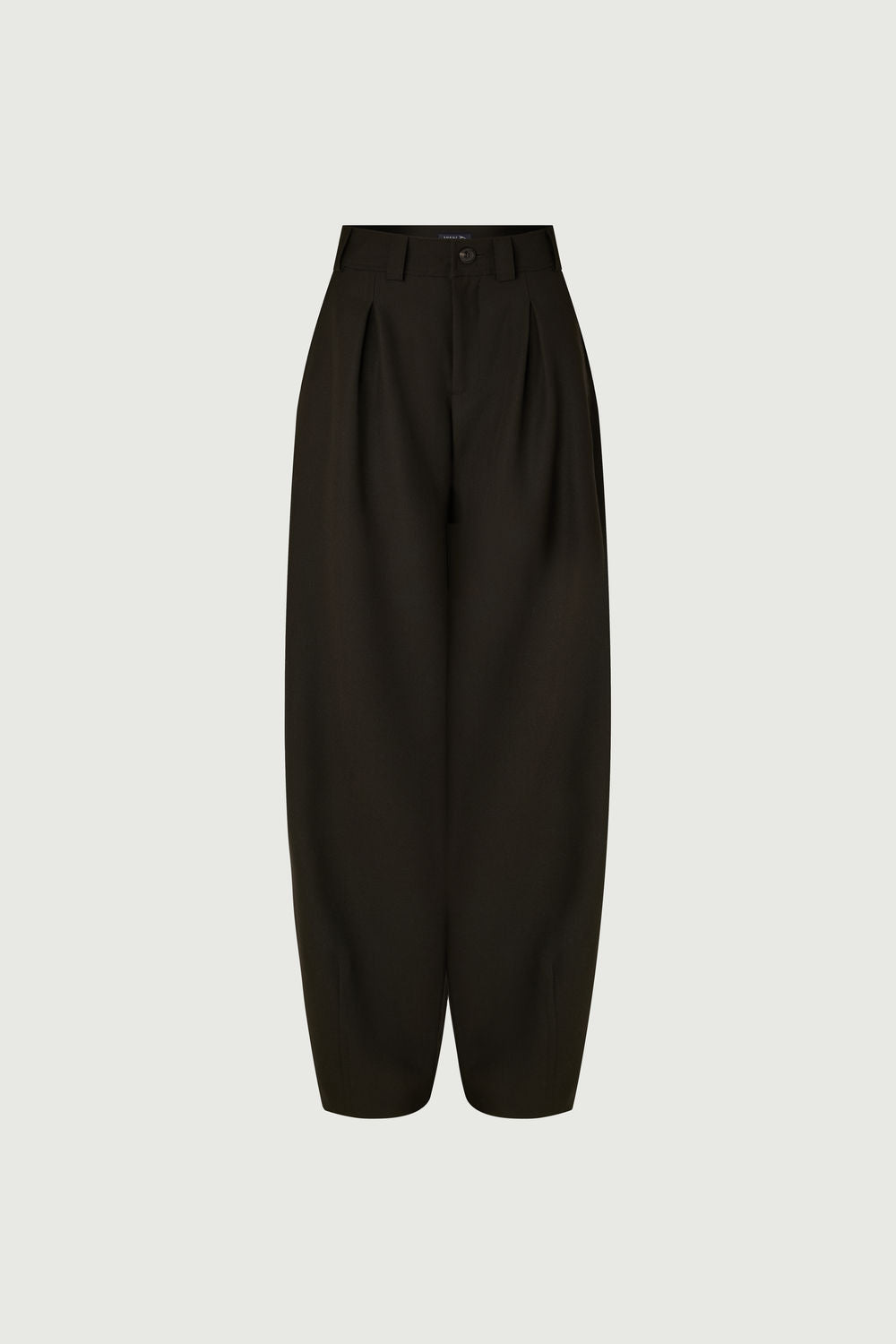 TIMON is a pleated trousers to be worn high-waisted with a belt and gathered, or low-waisted resting on the hips. It creates a controlled voluminous effect, paired with an oversized wardrobe. Match it with the TIMON trousers for a complete autumn look in wool gabardine.